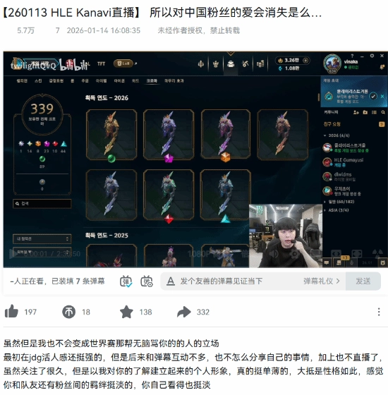 近日,直播吧消息显示,此前长期征战LPL赛区的选手Kanavi,本赛季已回归韩国LCK赛区发展,同时还与韩国当地的直播平台达成合作开启直播。不过他在直播时面对中文弹幕态度较为冷淡,这一行为引发了不少粉丝的不满情绪。