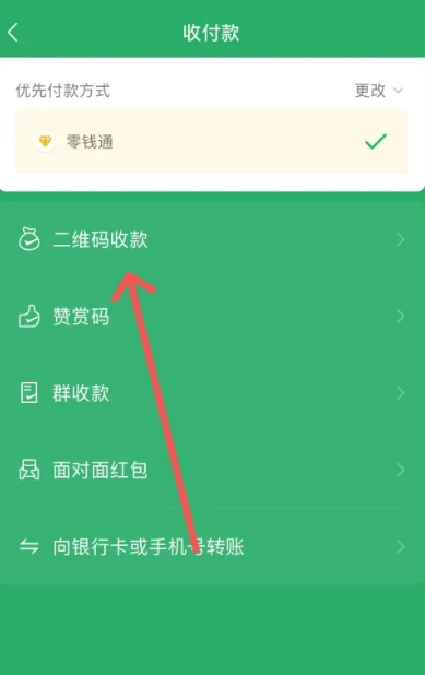 2、向下滑动收付款页面,即可进入二维码收款功能