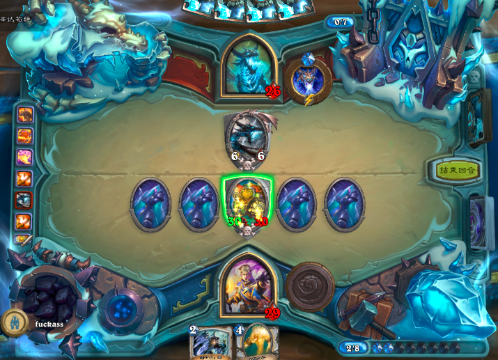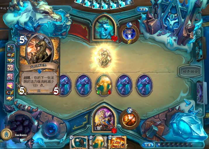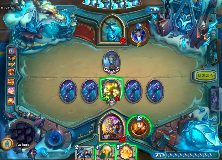 它便是辛达苟萨,其英雄技能为冰霜吐息,当生命值降至二十时,会将所有敌方随从转化为冰块。并且在对战初始阶段,我方场地上就存在四个冰块,因此我们仅能利用剩余的三个位置来放置随从。所以此时我们需要思考如何组建卡组。关于冰冠堡垒辛达苟萨的打法,今天我们将为大家介绍一套心火牧卡组。
